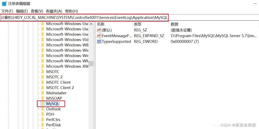 1、HKEY_LOCAL_MACHINE\SYSTEM\ControlSet001\Services\Eventlog\Application\MySQL 目錄刪除