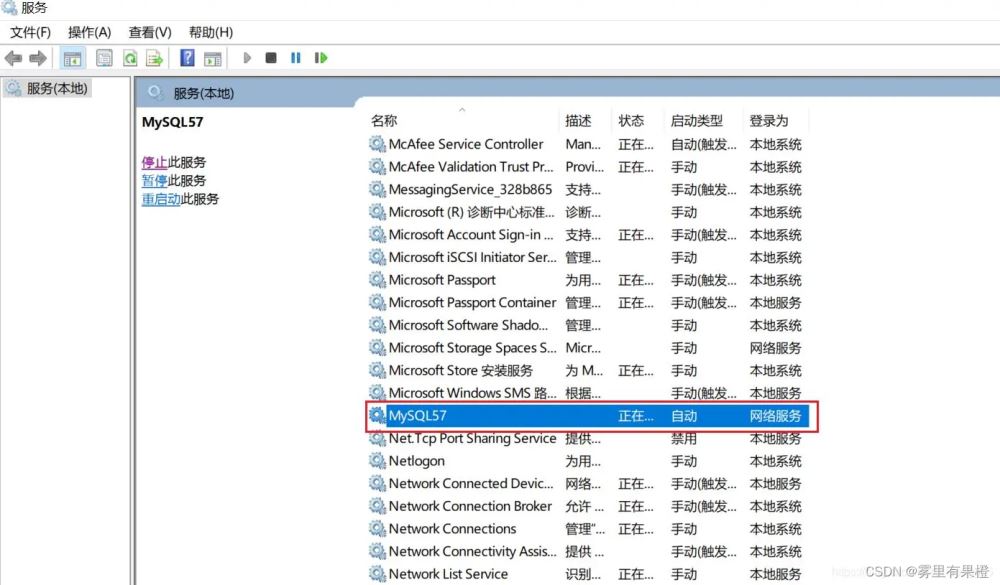 第四步,做完前三步,打開服務,會發現MySQL57服務依然存在,如下圖所示。這就是導致安裝失敗的重要原因,所以需要刪除MySQL57服務。方法:以管理員的權限運行dos命令,然后輸入 sc delete MySQL57 。