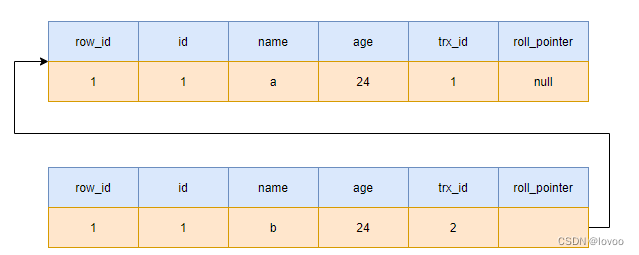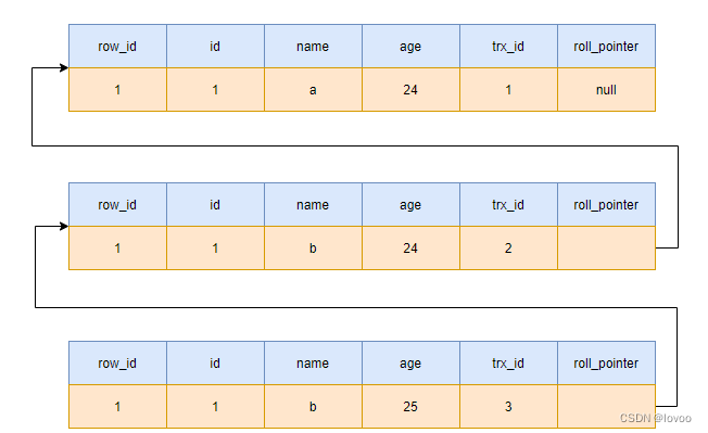 因此,roll_pointer可以將這些不同版本的undo log串聯起來,形成undo log的版本鏈。