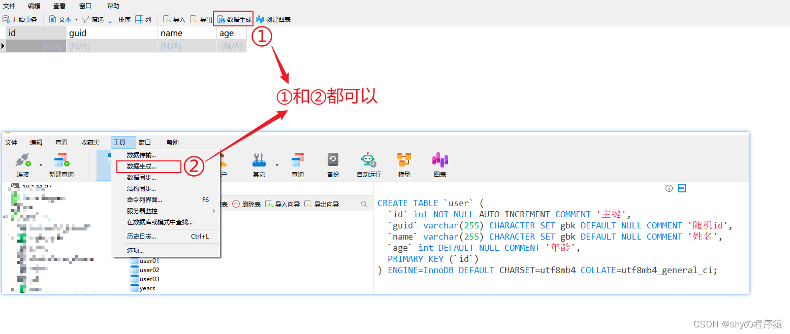 可以在數據表中或者Navicat上方的工具欄中找到數據生成工具