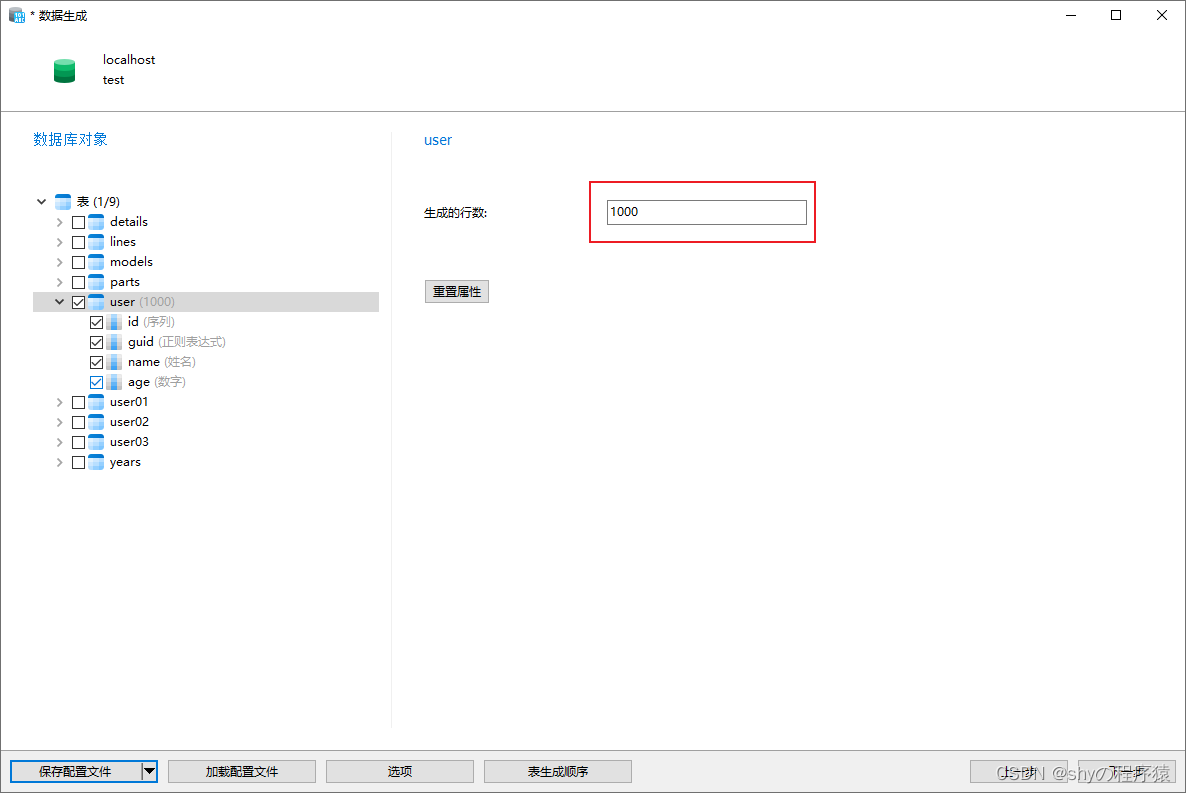 點擊“數據生成”后,我們點擊表名可以設置數據的生成數量