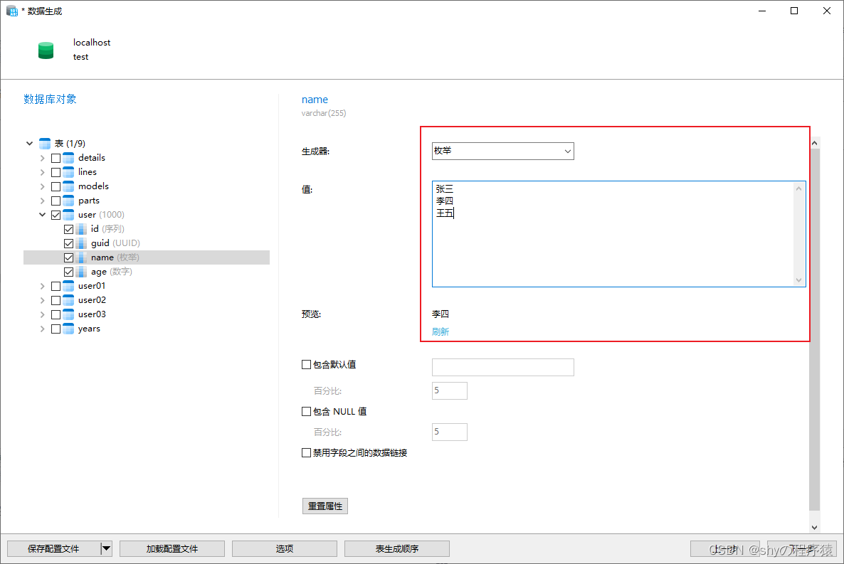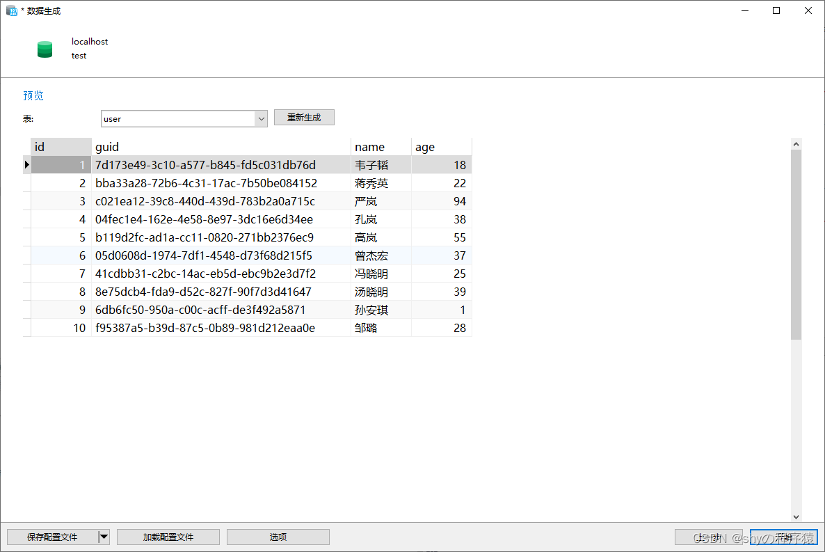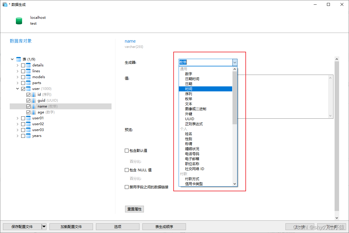 tips:我們在這一步可以對我們剛才所做的配置進行保存,并且可以在下次生成數據的時候直接加載配置好的文件