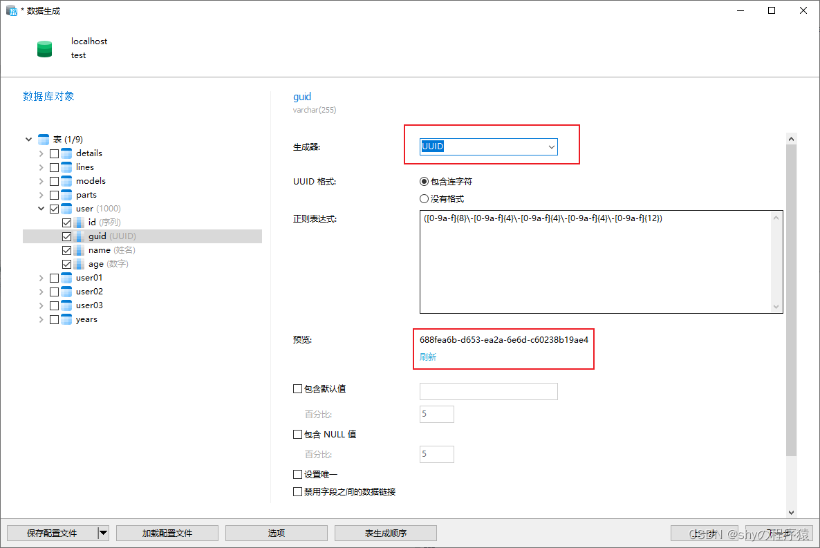 例如我的guid需要是uuid類型的,那我就可以選擇uuid生成器