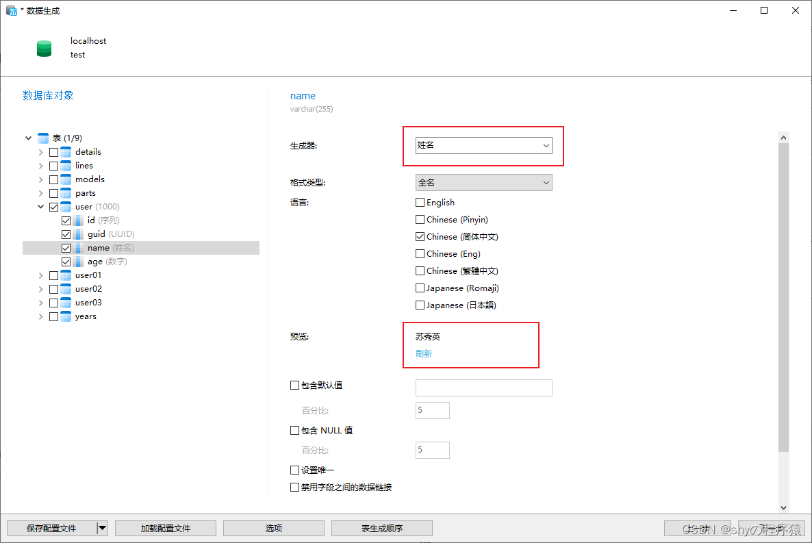 再比如我可以選擇姓名生成器去生成name字段所需要的值