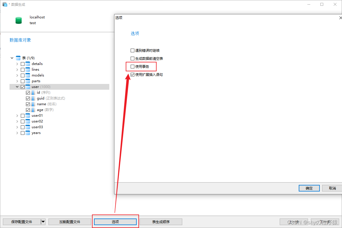 同時我們也可以在選項中,關閉事務,來提高插入效率