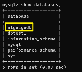 mysql> use atguigudb;