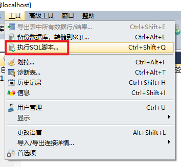1.打開(kāi)SQLyog并登錄至MySQL,在工具–>執(zhí)行SQL腳本: