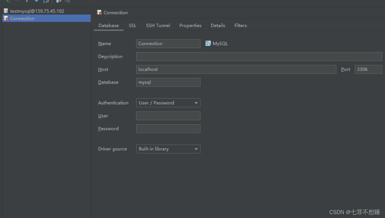 連接前可以用test connection測試一下數據庫是否能正常連接上