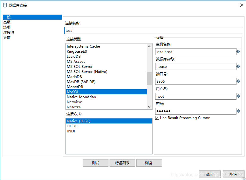把需要連接的數(shù)據(jù)庫(kù)名、用戶名及密碼填進(jìn)去