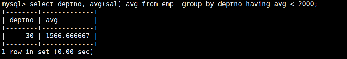 顯示平均工資低于2000的部門號和它的平均工資
