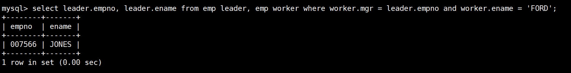 首先將兩張emp表分別作為leader表和worker表,查找出所有領導與員工之間的關系表