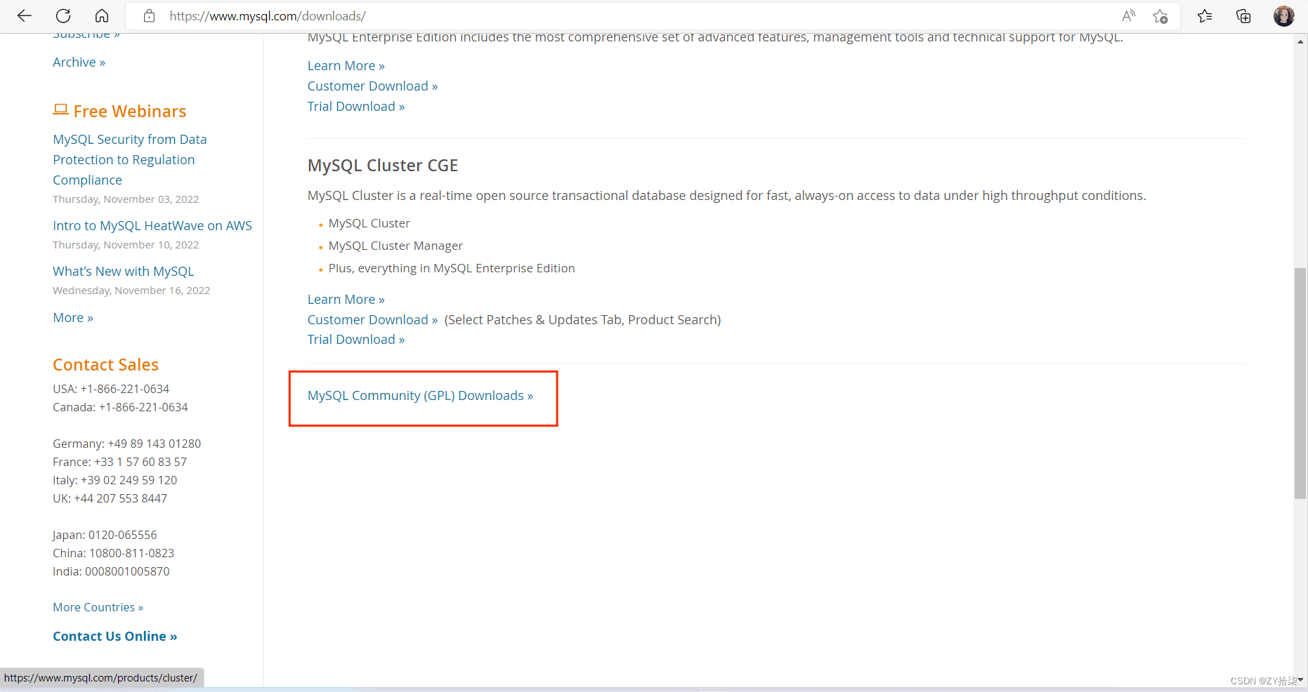 打開MySQL的官網,點擊圖中標紅方框中的內容即可,如不理解(可私信)