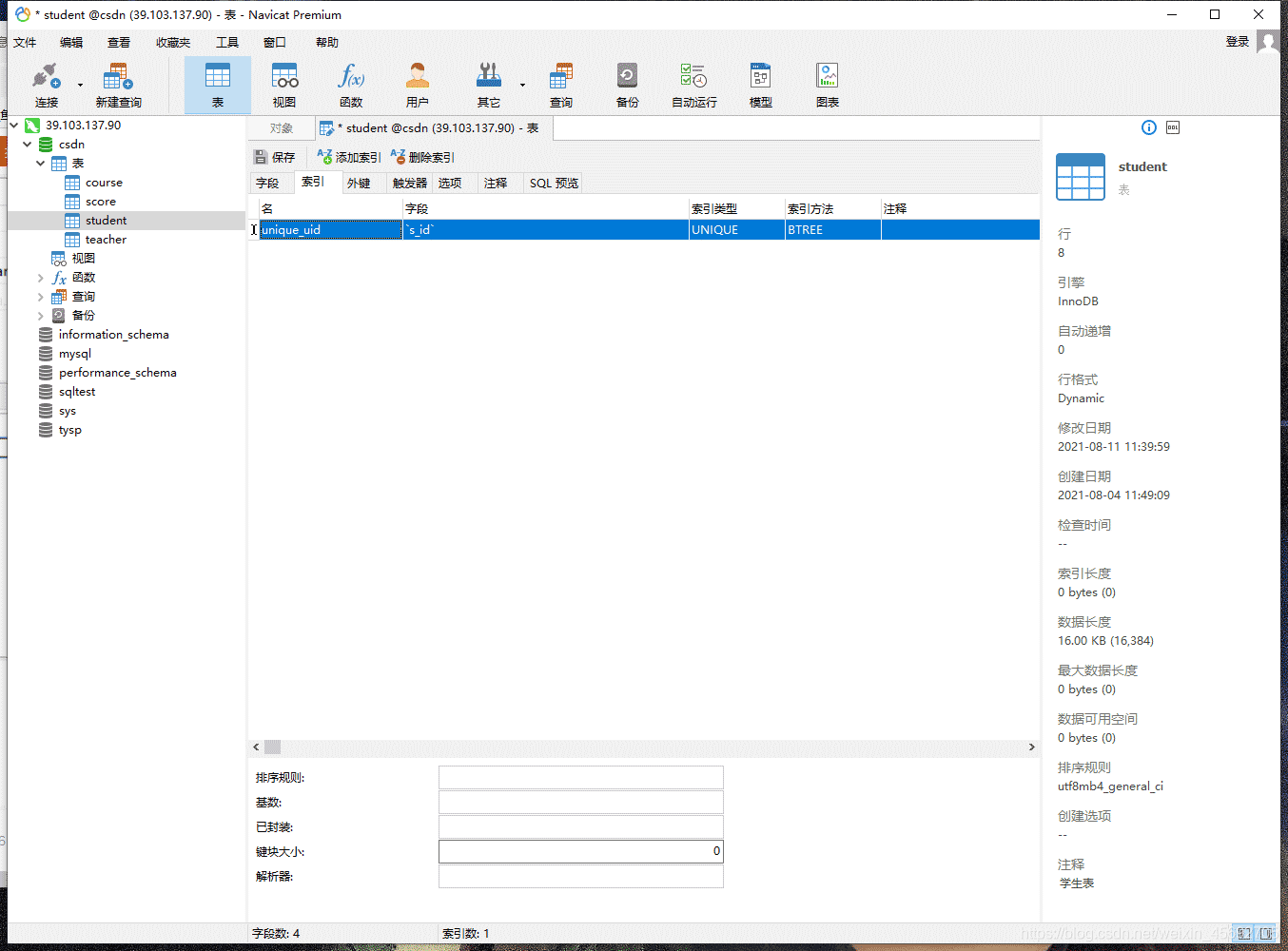 學生表(student)