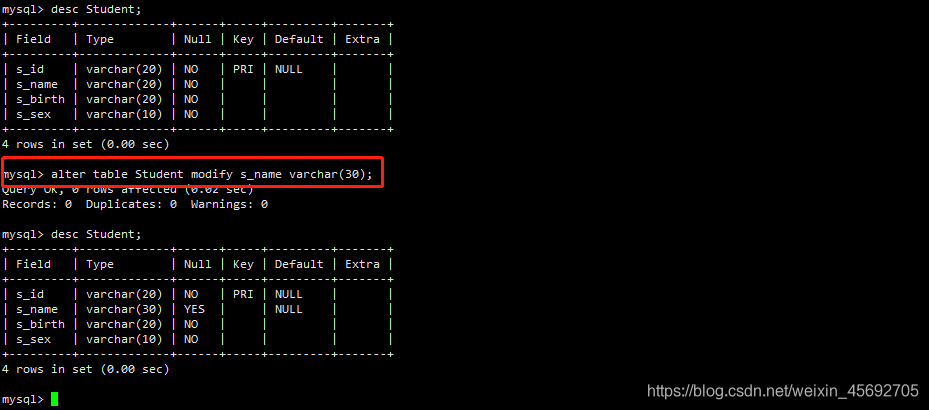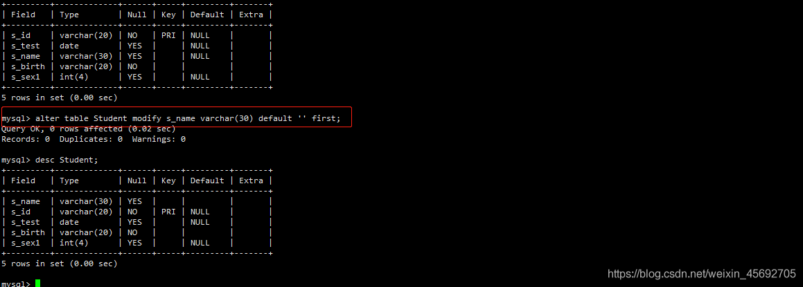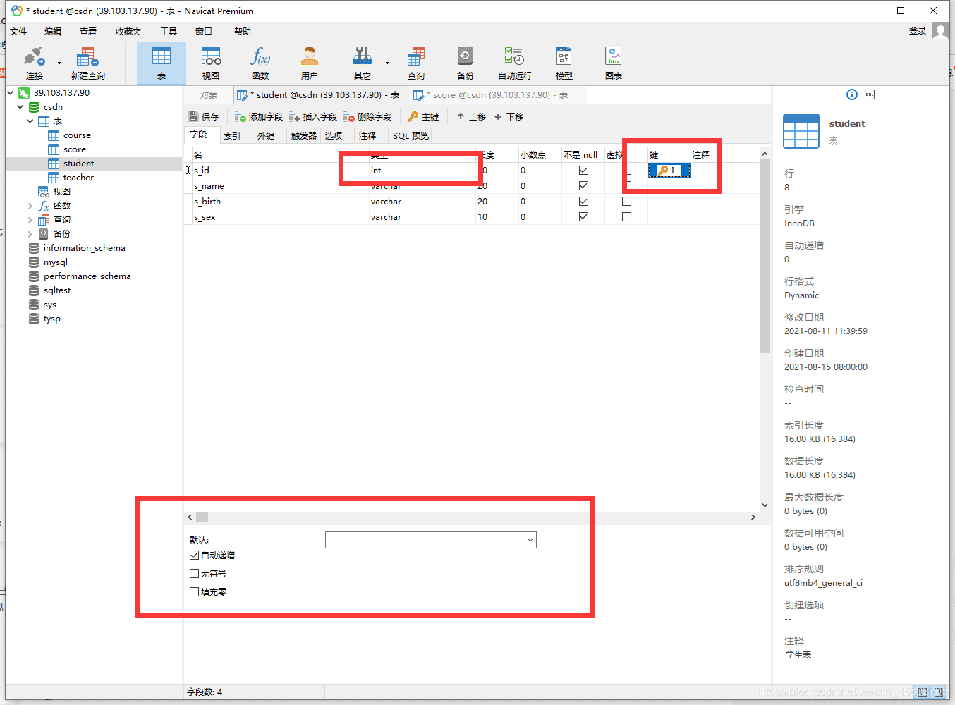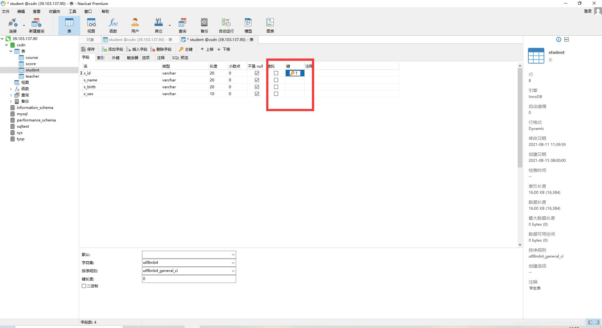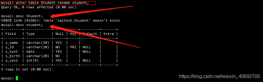 s_id = 學生編號,s_name = 學生姓名,s_birth = 出生年月,s_sex = 學生性別