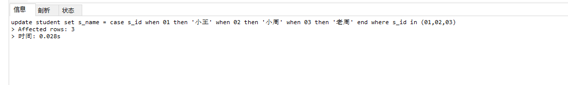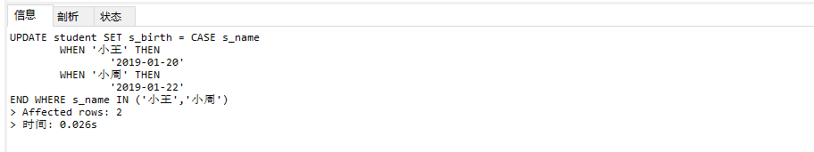 3. CASE expr WHEN v1 THEN r1 [WHEN v2 THEN v2] [ELSE rn] END