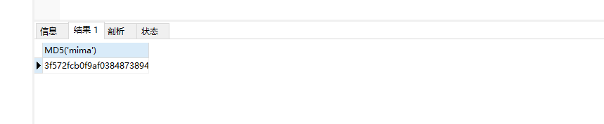 SELECT MD5(‘mima’)