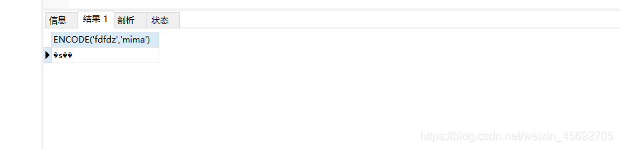 SELECT ENCODE(‘fdfdz’,‘mima’)