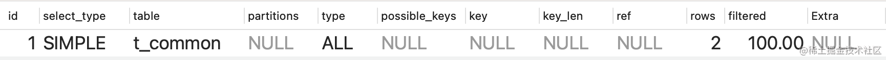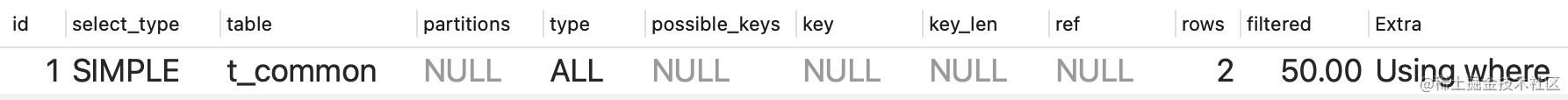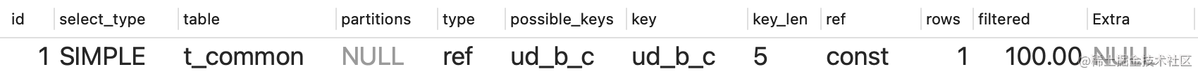 select a,b,c,d from t_common where c=1;