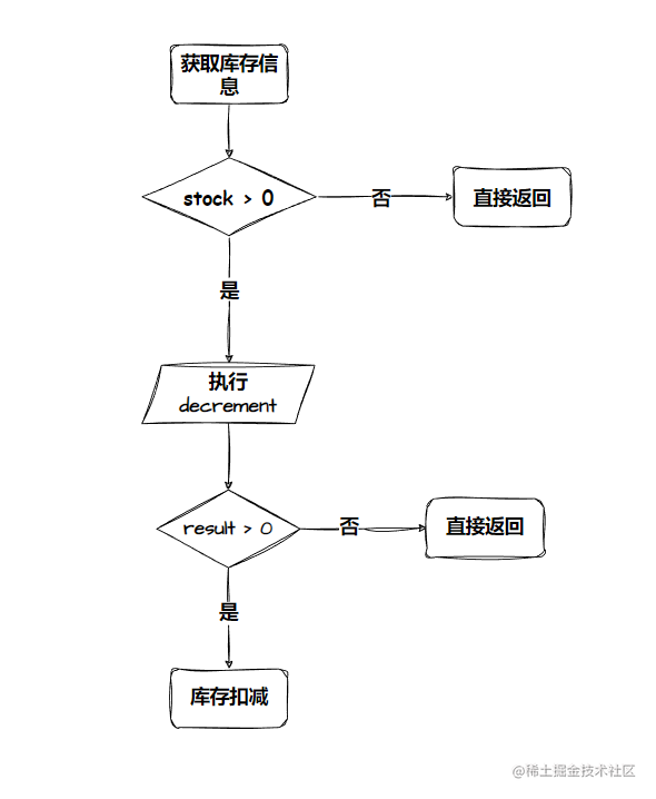 若該值大于等于 0 才進(jìn)行數(shù)據(jù)庫的庫存的扣減,否則直接返回庫存不足的提示