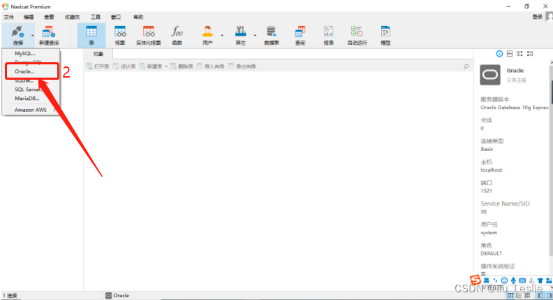 4、連接Oracle數(shù)據(jù)庫,依次點(diǎn)擊:連接 --> Oracle 進(jìn)行新建連接 ; 如下圖: