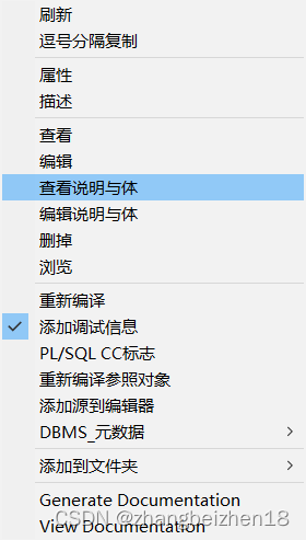 5.1 右鍵包名稱,選擇菜單:查看說明與體。即進入包里存儲過程。