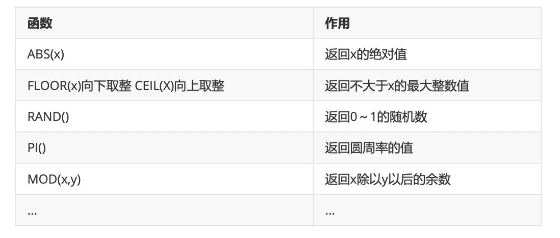 六、MySQL函數函數常用的就這些了,不用硬記,不會的百度查就行了,寫著寫著就記住了。