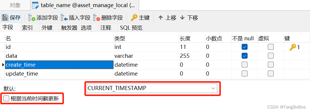 創(chuàng)建表時(shí)設(shè)置字段為自動(dòng)更新時(shí)間列。添加新字段為自動(dòng)更新時(shí)間列。更新已有字段為自動(dòng)更新時(shí)間列。通過(guò)navicat設(shè)置字段為自動(dòng)更新時(shí)間列。函數(shù)講解:CURRENT_TIMESTAMP表示插入新行時(shí),該列將自動(dòng)設(shè)置為當(dāng)前時(shí)間,create_time設(shè)置了默認(rèn)值為CURRENT_TIMESTAMP后,插入新數(shù)據(jù)就會(huì)在create_time字段中自動(dòng)填充當(dāng)前時(shí)間。