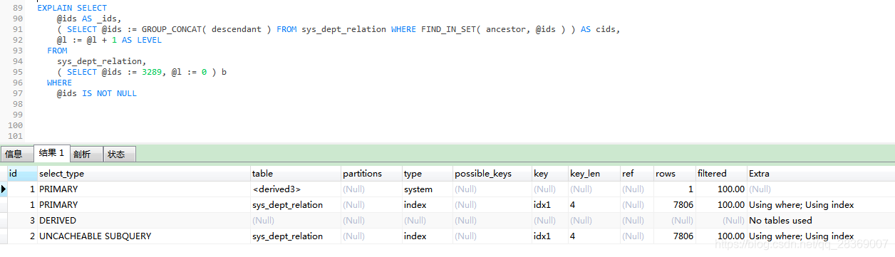 目錄一、前言二、相關語法函數介紹三、具體實現查詢父級為 2 的下級 無限級查詢四、效率問題EXPLAN 相關參數總結一、前言