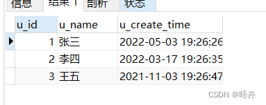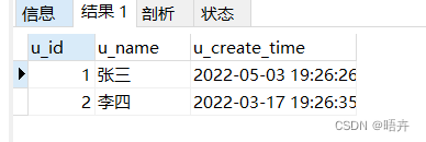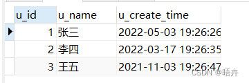 select * from u_user where u_create_time > DATE_SUB(NOW(),INTERVAL 1 YEAR);結(jié)果: