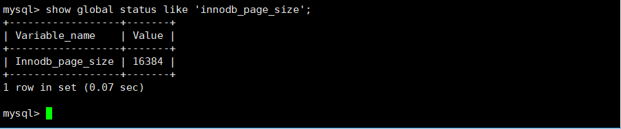 show global status like 'innodb_page_size';-- 16382/1024=16KB