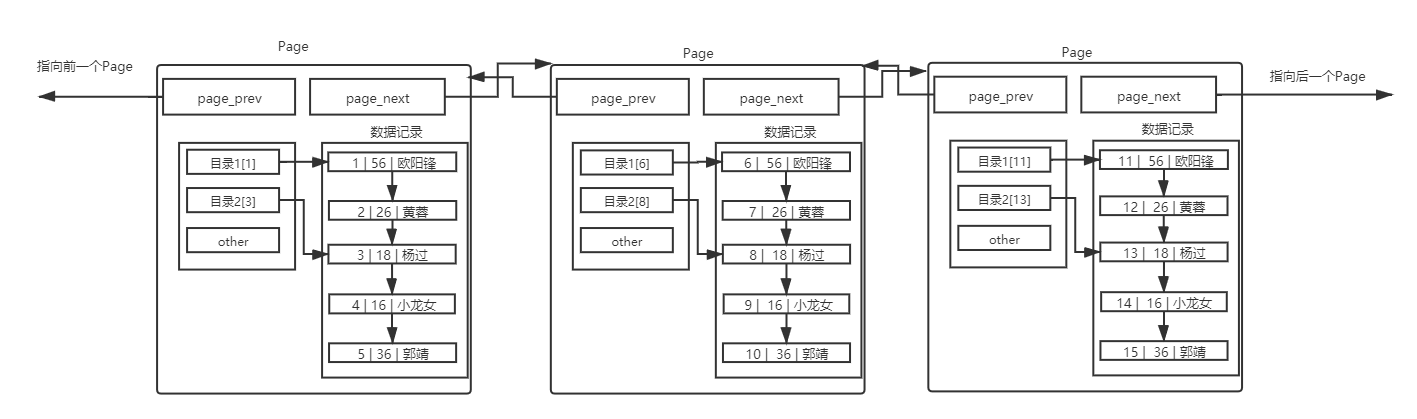 對于不同的 Page ,在 MySQL 中,都是 16KB ,使用 prev 和 next 構成雙向鏈表因為有主鍵的問題, MySQL 會默認按照主鍵給我們的數據進行排序,從上面的Page內數據記錄可以看出,數據是有序且彼此關聯的。