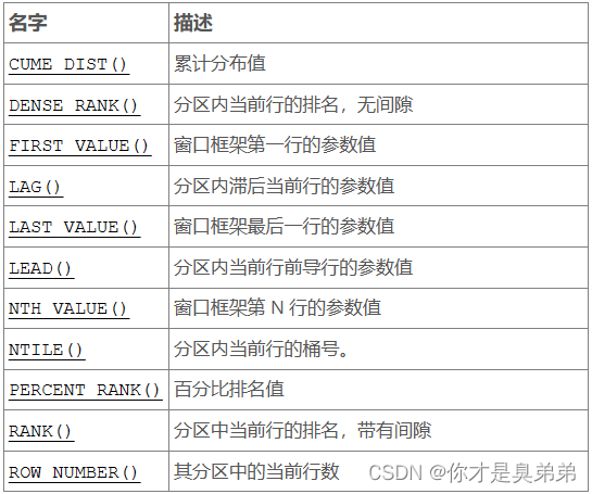 注意: 官方解釋 開窗函數只有MySQL8.0版本之后才有哦。