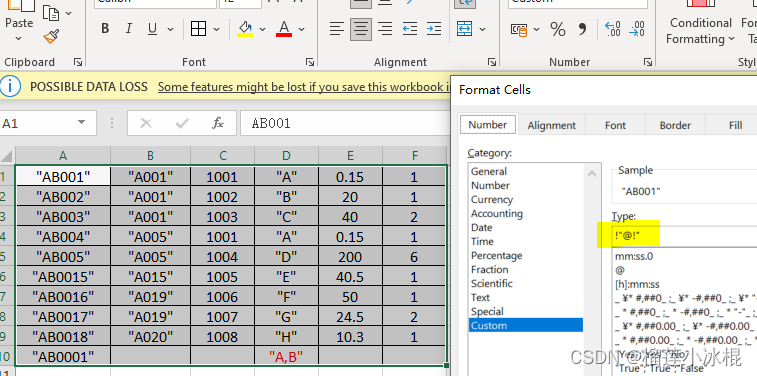 給表格數據加上引號:!"@!"