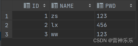 -- 先創(chuàng)建表create table teacher( id number, name varchar2(32), pwd varchar2(32), primary key (id)); -- 再創(chuàng)建序列create sequence teacher_seq; -- 插入三條數(shù)據(jù),將主鍵id設(shè)置為序列的下一個值,這個就相當于自增insert into teacher values (teacher_seq.nextval,'zs','123');insert into teacher values (teacher_seq.nextval, 'lx', '456');insert into teacher(id, name, pwd) values (teacher_seq.nextval, 'ww', '123'); -- 插入數(shù)據(jù)后確認無誤一定要提交,否則不會保存commit ; select * from teacher;