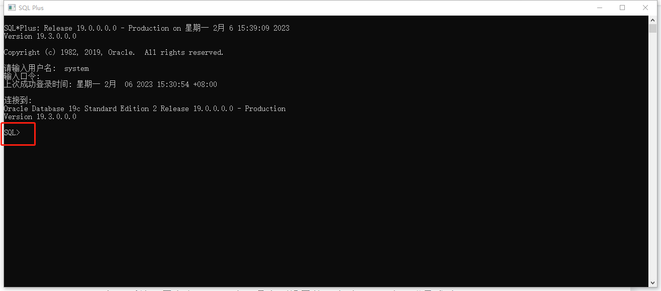 打開后輸入 用戶名:system,密碼是上面設(shè)置的口令,出現(xiàn) sql 表示登錄成功