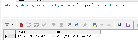 select sysdate, sysdate + numtoyminterval(3, 'year') as res from dual;結(jié)果: