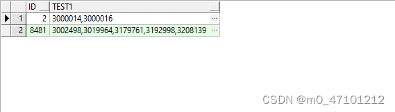 SELECT ID, replace(replace(replace(test /*替換的列*/, '[', ''), ']', ''), ' ', '') FROM table /*替換的表*/2、按逗號分割后結果