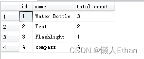 if OBJECT_ID('products', 'U') is not null drop table productscreate table products (id int primary key identity(1,1),name nvarchar(50) not null,total_count int not null)insert into products (name, total_count) values ('Water Bottle', 3),('Tent', 2),('Flashlight', 1),('compass',4)到此這篇關于SQLServer實現Ungroup操作的示例代碼的文章就介紹到這了,更多相關SQLServer Ungroup操作內容請搜索好吧啦網以前的文章或繼續瀏覽下面的相關文章希望大家以后多多支持好吧啦網!