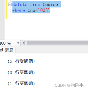 alter table scdrop constraint FK_sc__sno__332C9D34(2)為Course表創(chuàng)建一個(gè)觸發(fā)器Course_del,當(dāng)刪除了Course表中的一條課程信息時(shí),同時(shí)將表sc表中相應(yīng)的學(xué)生選課記錄刪除掉。