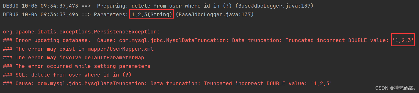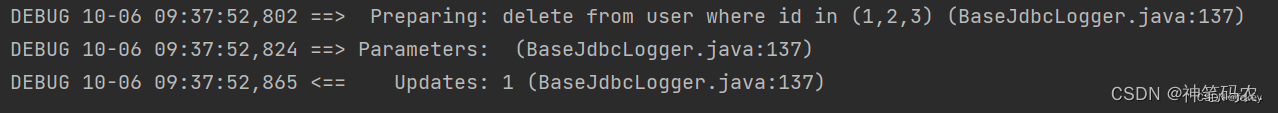 <delete id='deleteByIds'> delete from user where id in (${ids})</delete>結(jié)果成功了,看來有些場景不得不使用${}