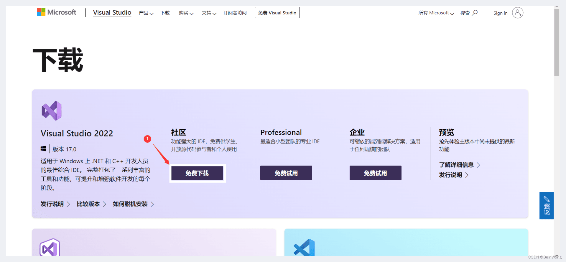 一、軟件準(zhǔn)備1. 安裝Visual Studio2022Visual Studio2022安裝包下載官網(wǎng),點(diǎn)擊免費(fèi)下載,或者點(diǎn)擊這里下載