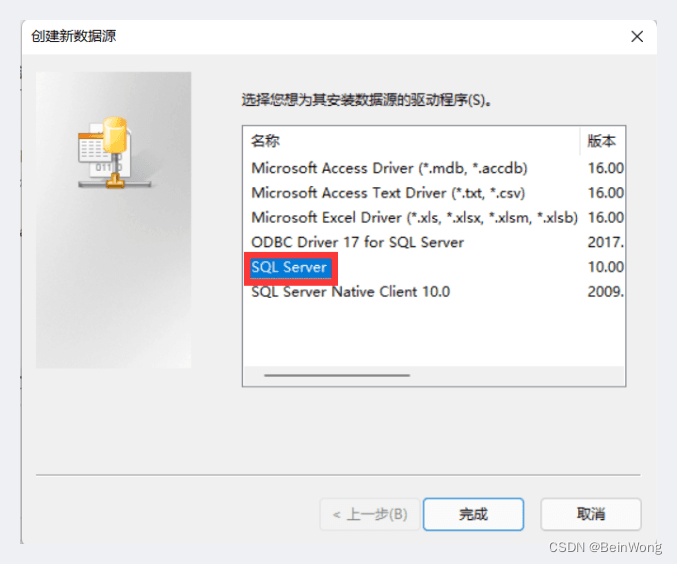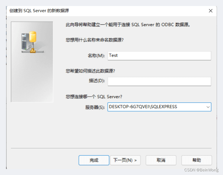 名稱填數(shù)據(jù)庫(kù)名,服務(wù)器復(fù)制剛進(jìn)去SQL Server的服務(wù)器名稱(如下圖),點(diǎn)擊完成