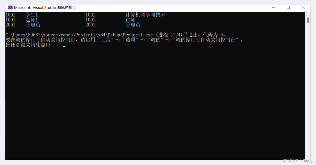 測(cè)試代碼,如果顯示如下圖結(jié)果,恭喜你數(shù)據(jù)庫(kù)連接成功了