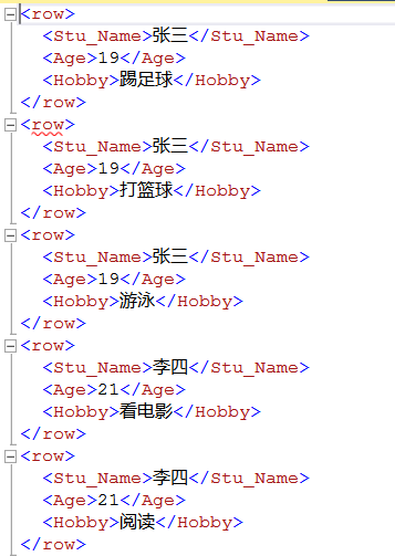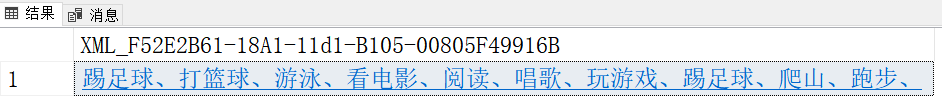 SELECT?*FROM?dbo.Stu_Hobby?FOR?XML?PATH;