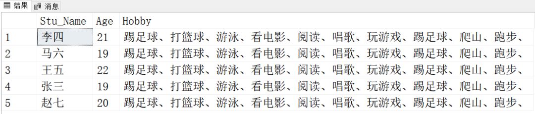 就會將Hobby列所有值都顯示出來,很顯然這不是我們要的結果