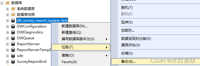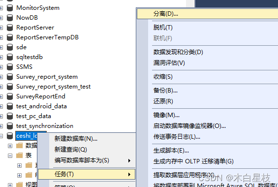 2.右鍵數(shù)據(jù)庫點(diǎn)擊任務(wù),分離。