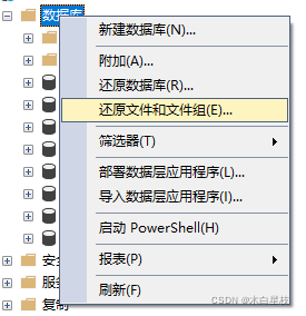 右鍵數(shù)據(jù)庫點(diǎn)擊還原文件和文件組