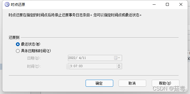 簡單恢復模式下,數據庫不能還原到特定備份中的特定時間點;