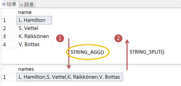 2、MS SQL Server的2017新增了STRING_AGG()是一個聚合函數