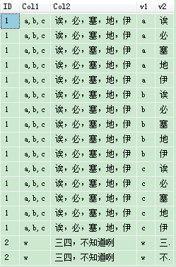 需求就是將Col1,Col2按照特定的字符串分割成多行